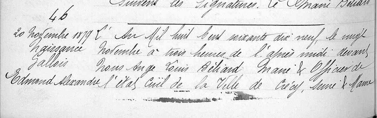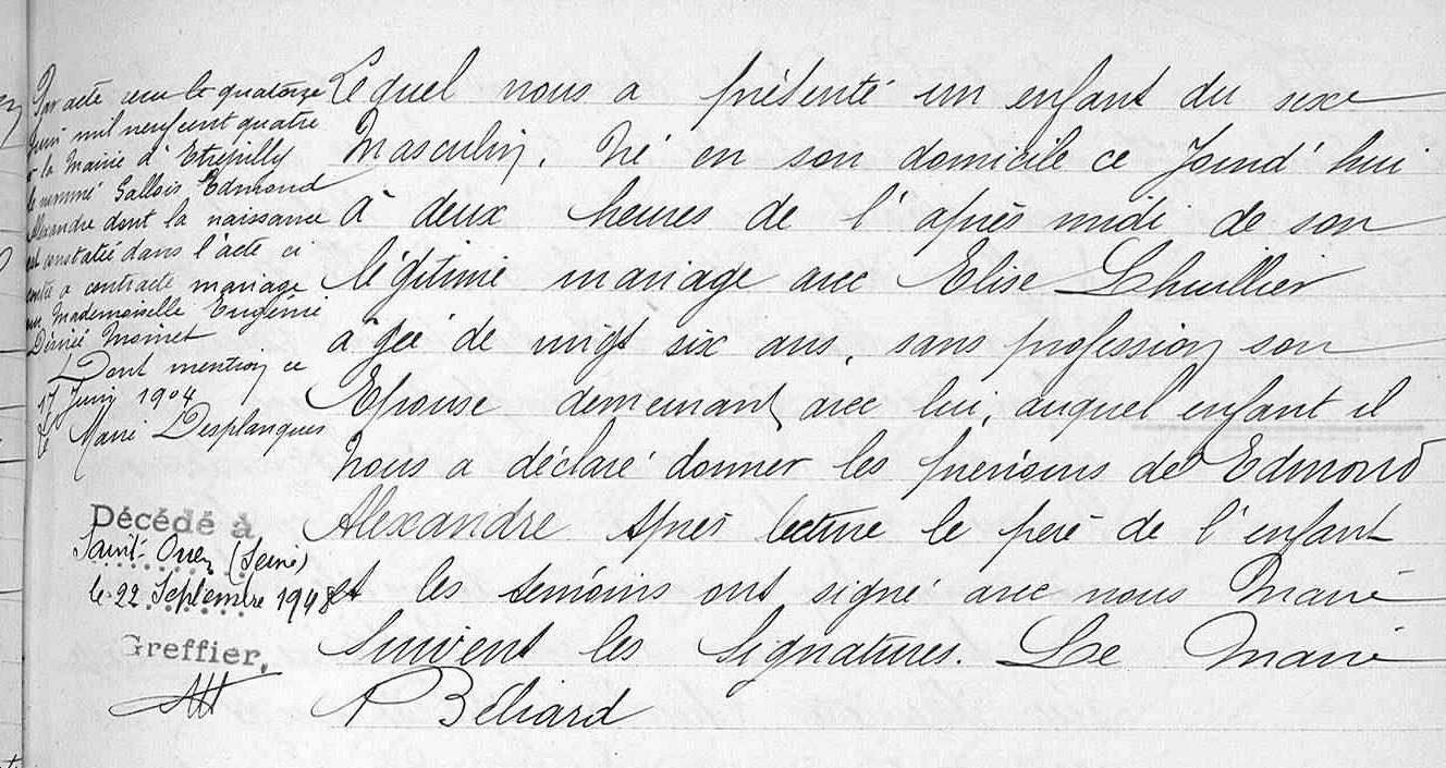 enfant il a déclaré donner les prénoms de Edmond