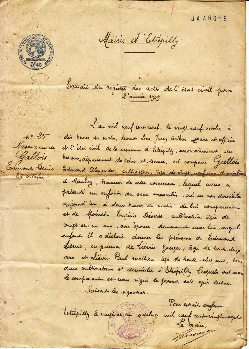 GALLOIS Edmond Denis 29/10/1909