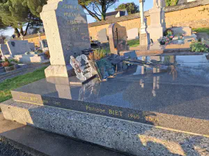 - En entrant dans le cimetière, 1ère allée à droite, 15ème sur la droite.