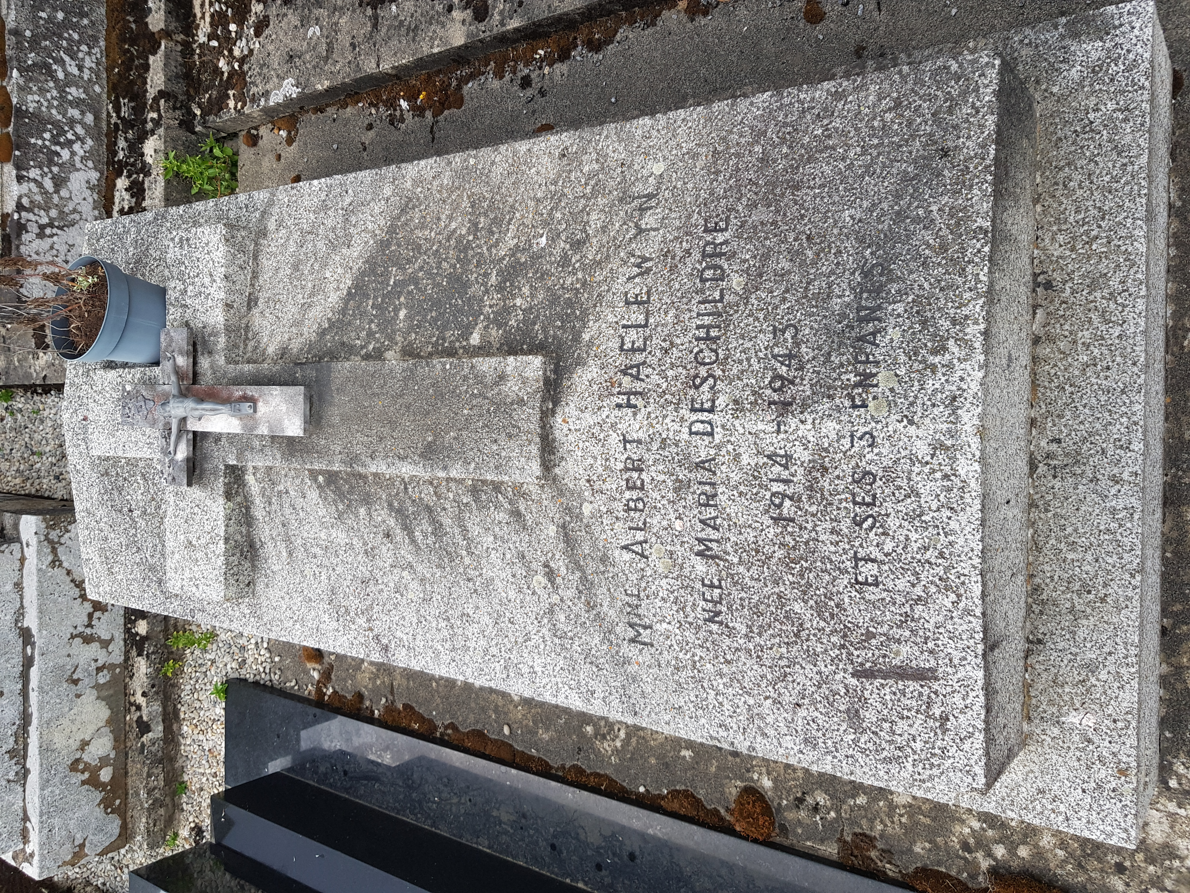 - Les trois enfants ne sont pas nommés sur la tombe. Les prénoms proviennent du livret de famille de Albert HAELEWYN et Maria DESCHILDRE.