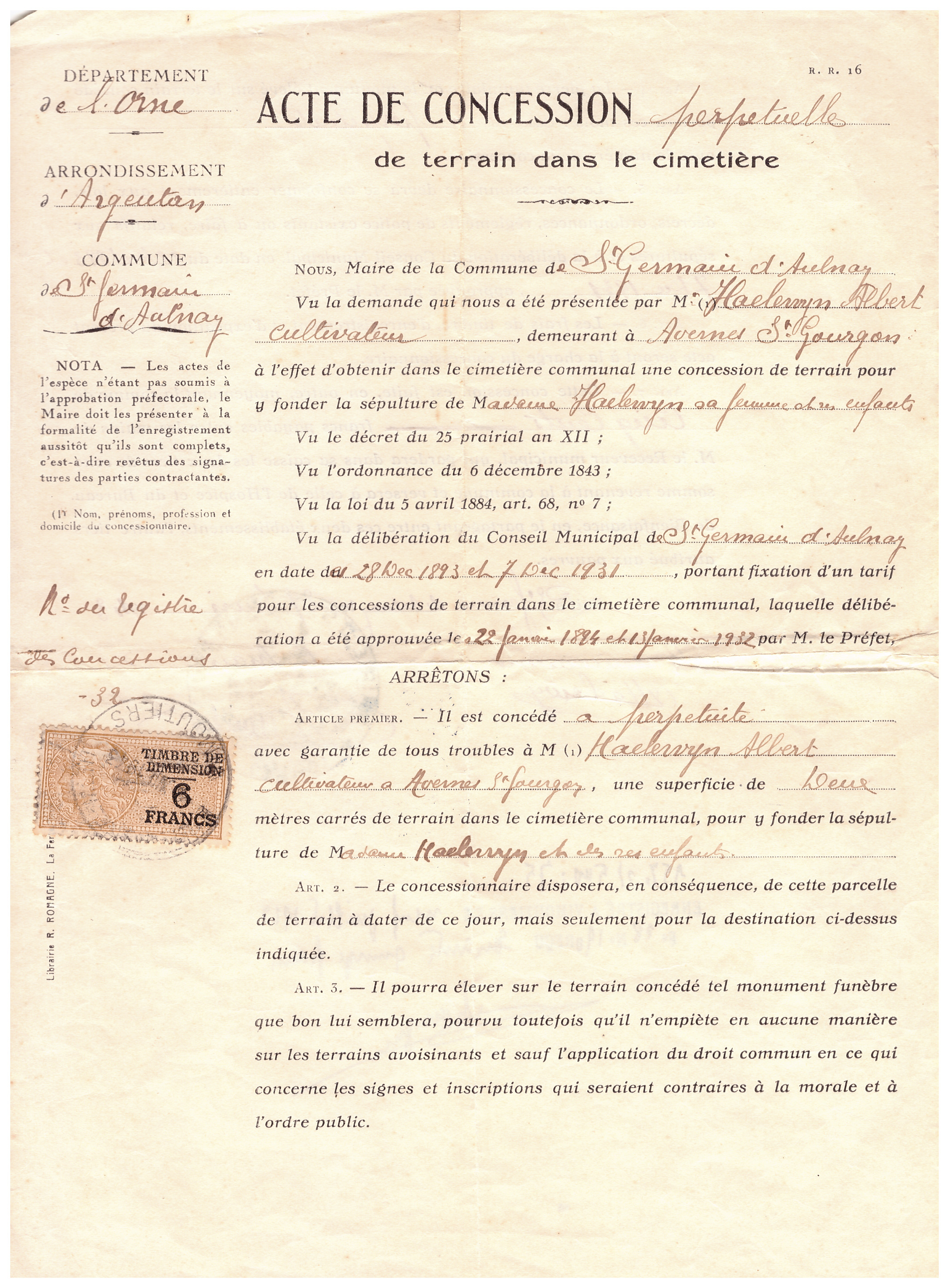 Document de concession perpétuelle - Images