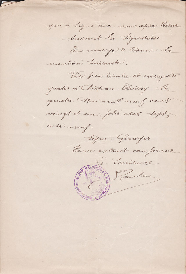 A partir de ce moment, les documents manquent actuellement. La prochaine trace esr l’enregistrement chez Maître Notta à Château-Thierry de la vente par adjudication le 12 décembre 1924.