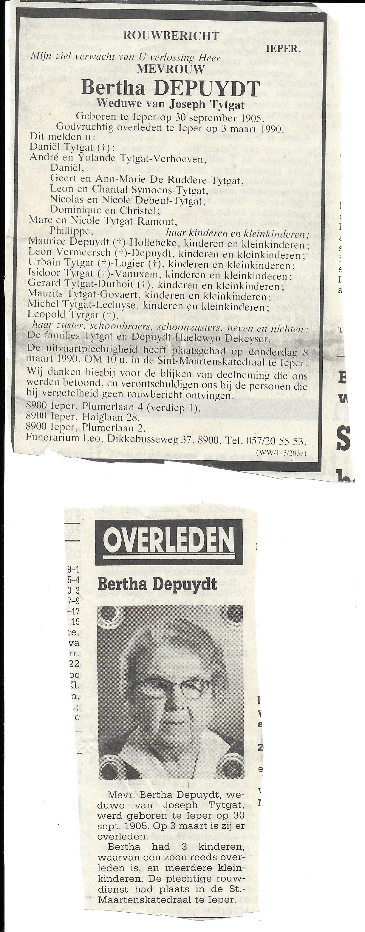 Bertha DEPUYDT 03/03/1990