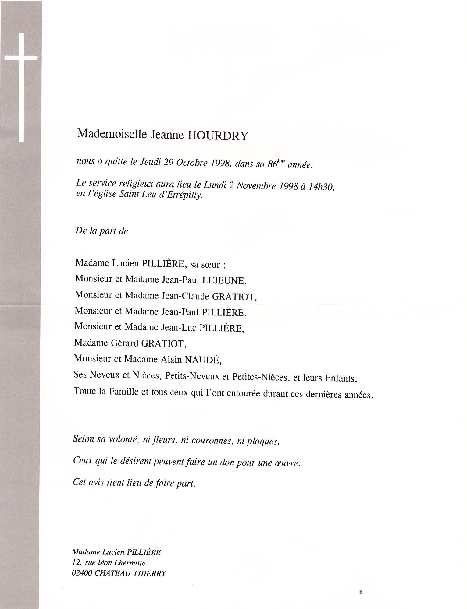 Jeanne HOURDRY 02/11/1998