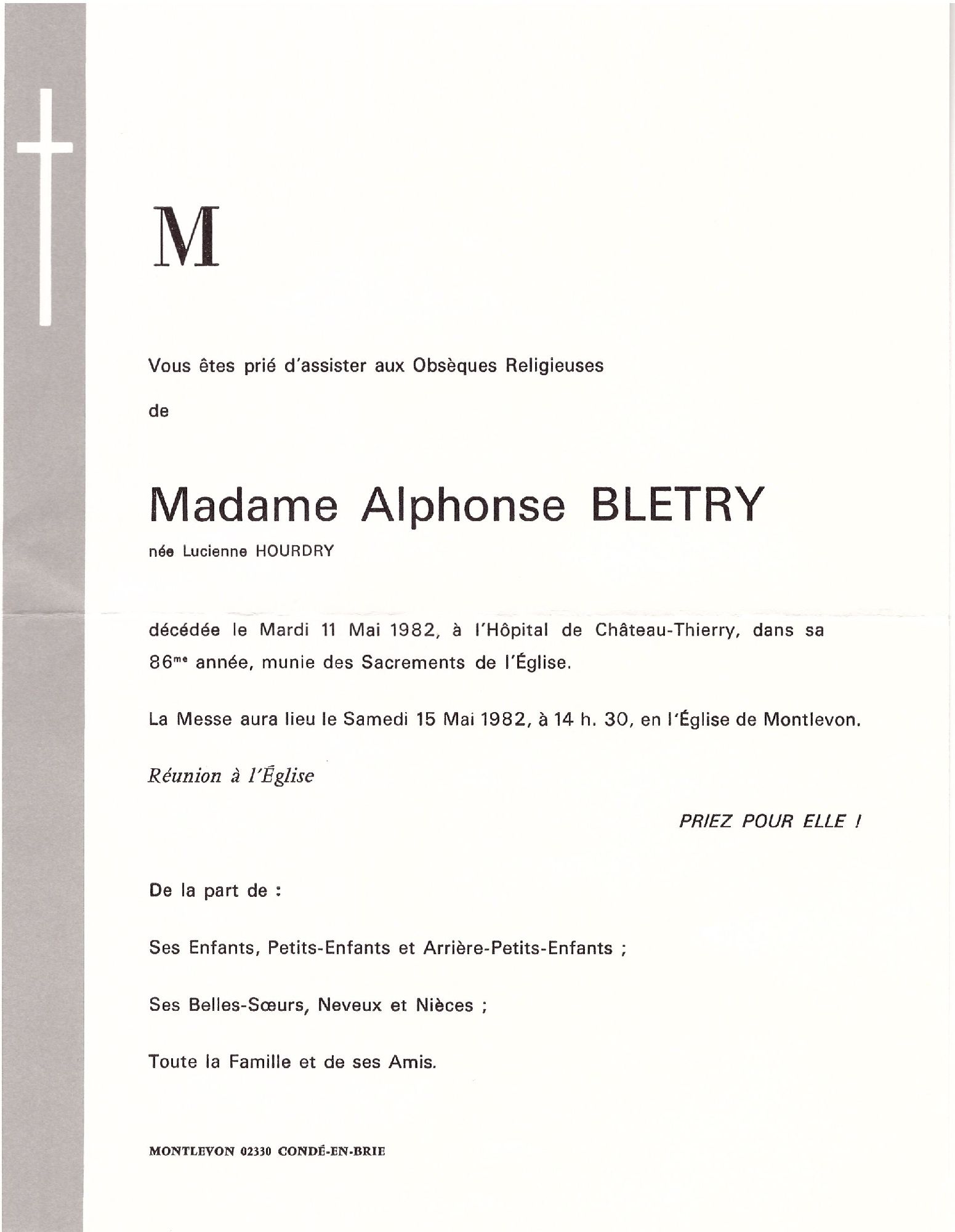 Lucienne HOURDRY 11/05/1982