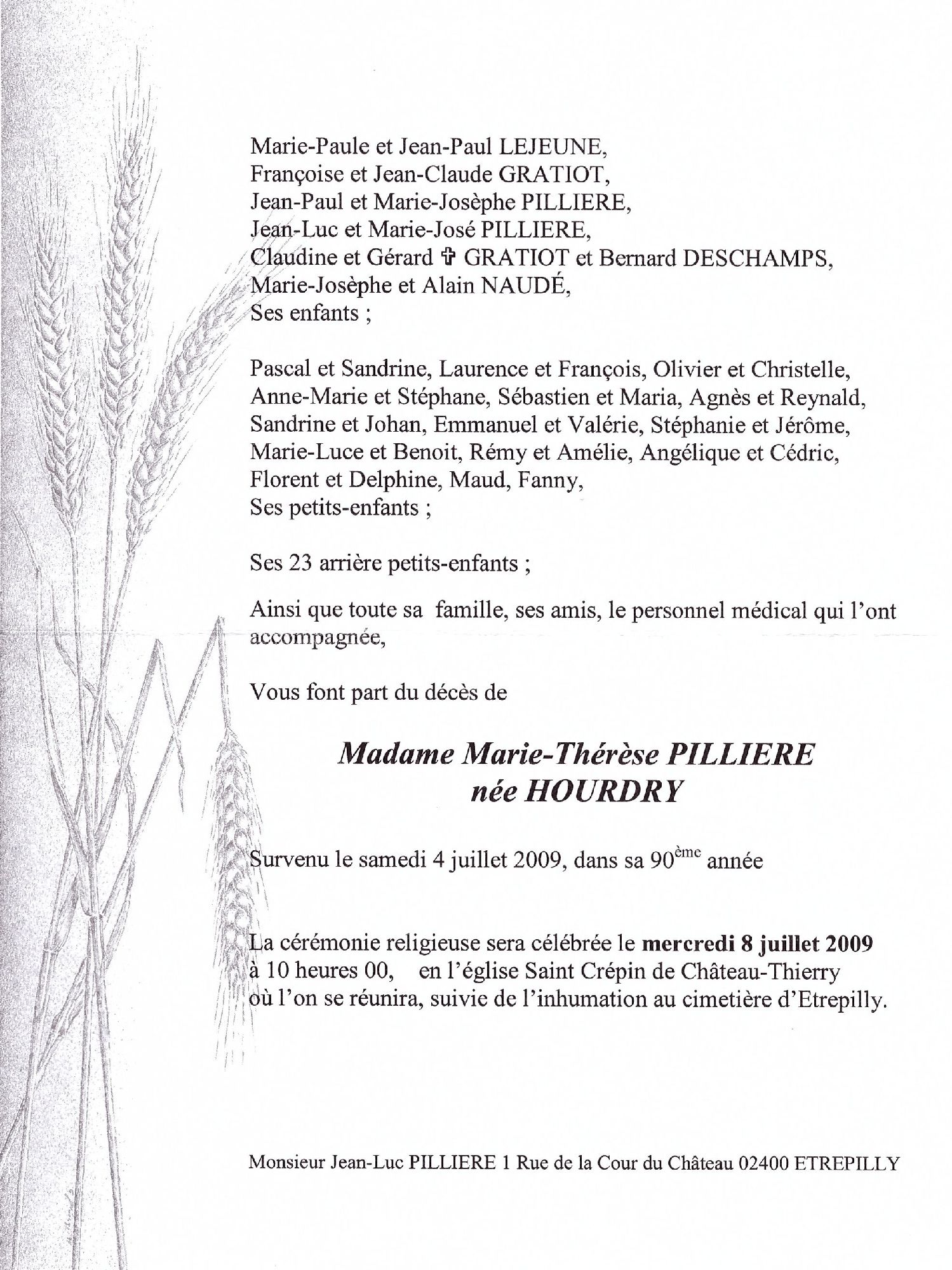 Marie-Therese HOURDRY 04/07/2009