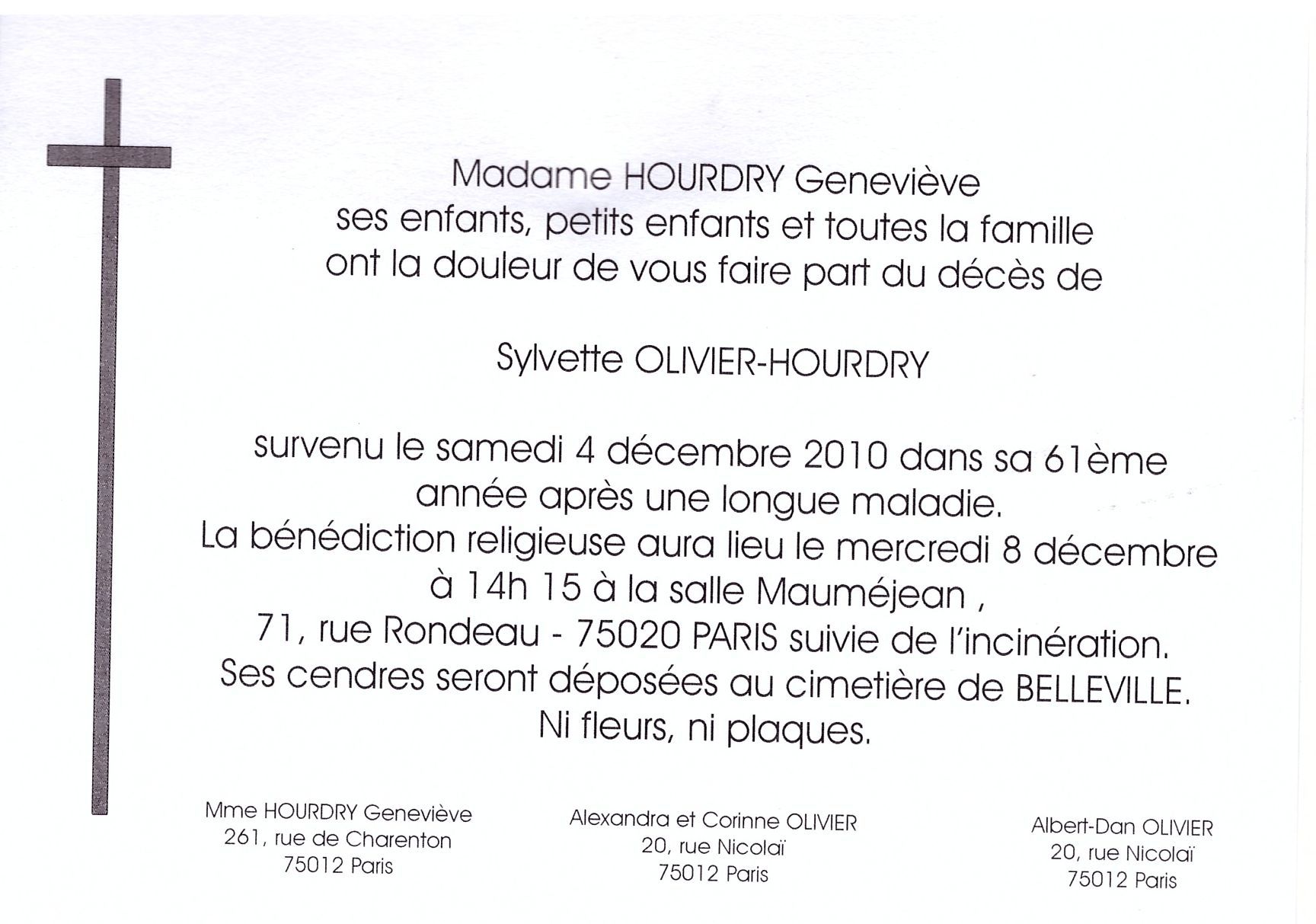 OLIVIER Sylvette (épouse HOURDRY)