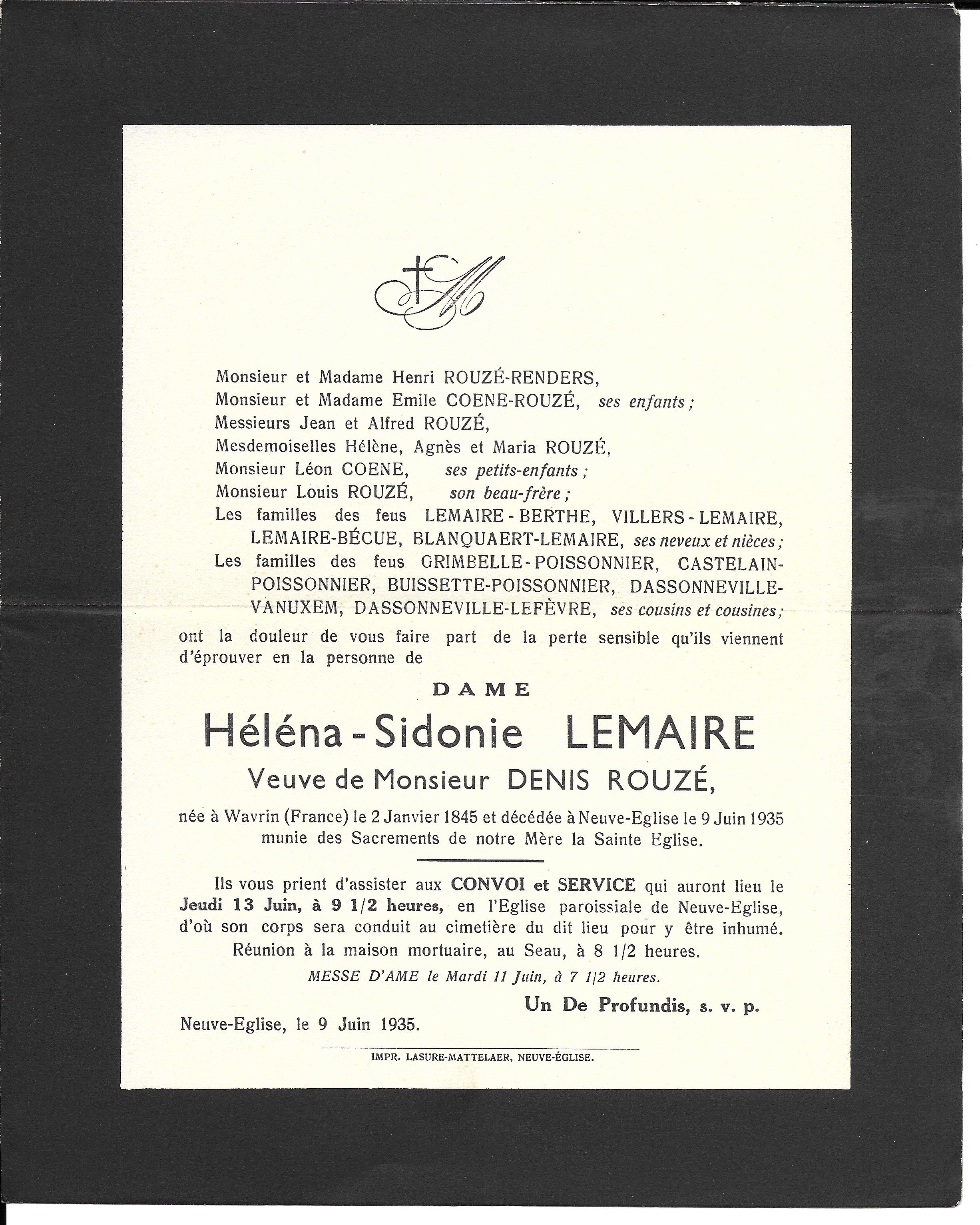 Mortuaires de la famille LEMAIRE