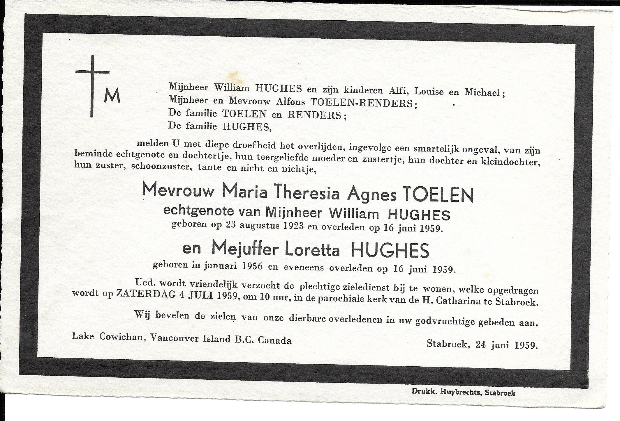 TOELEN Maria (épouse HUGHES)