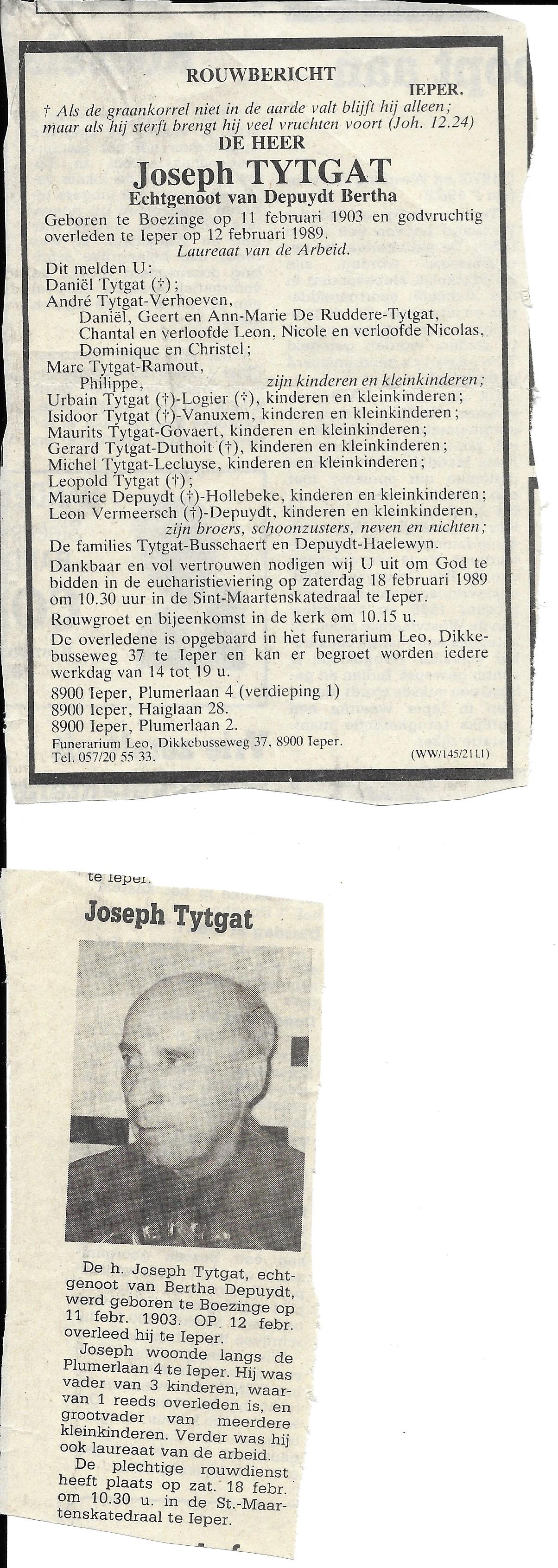 Joseph TYTGAT 12/02/1989