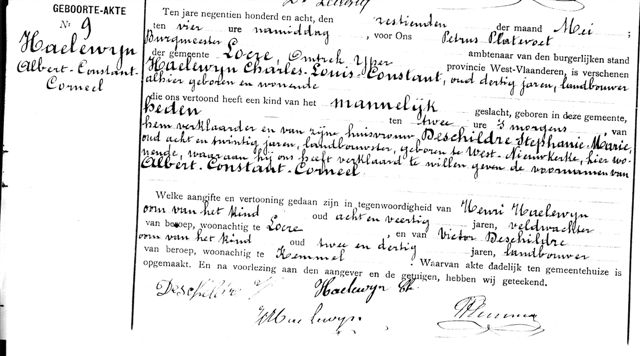Albert Constant Corneel HAELEWYN est né le 16 mai 1908 à Locre (Loker) en Belgique dans les Flandres Occidentales. Quatrième d’une fratrie de douze, il est le premier fils.