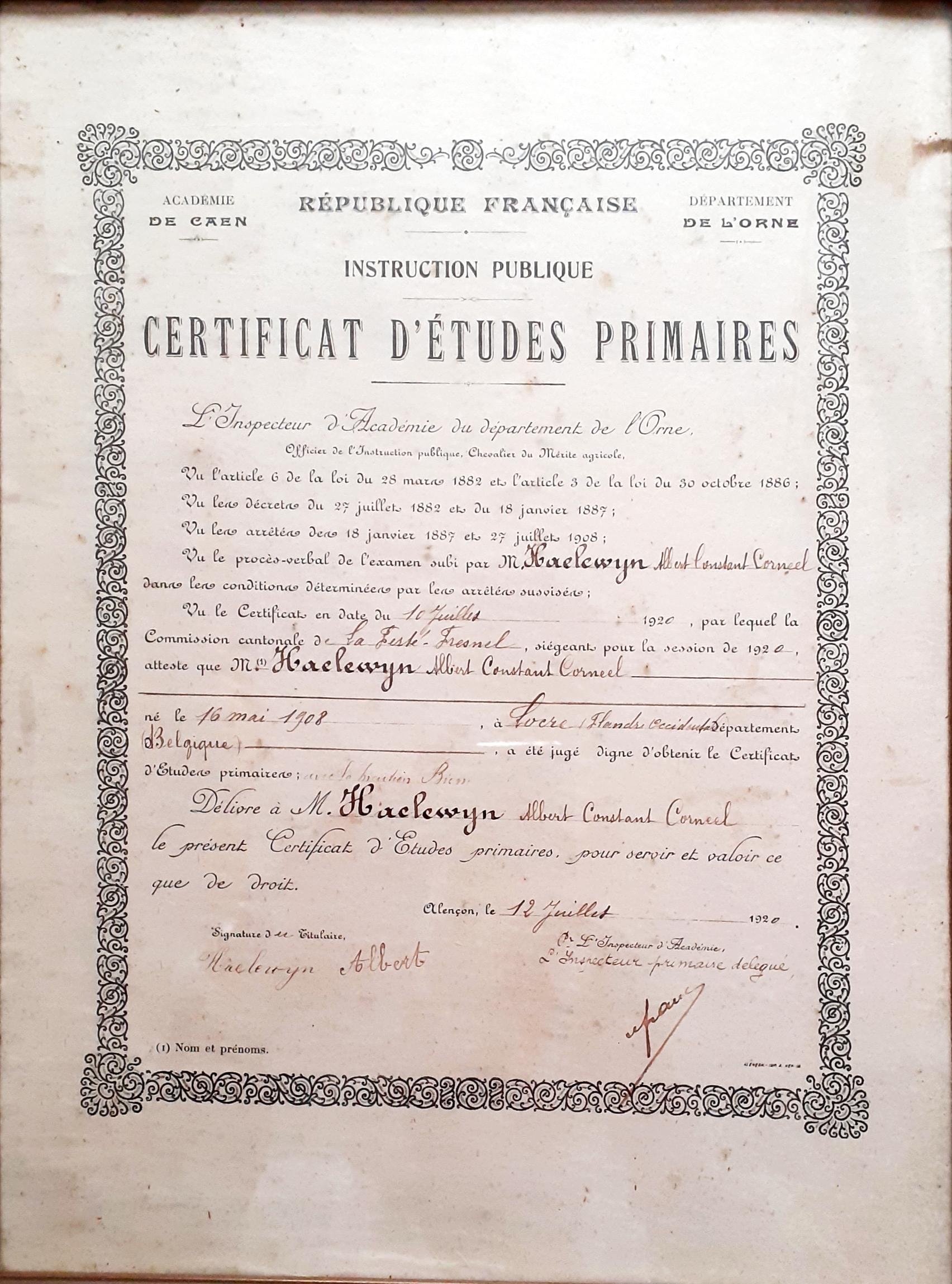 Mais personne ne parle français… À l’école, le flamand ou l’allemand semblent être la même langue. Alors Albert et ses frères et sœurs se font traiter de « boches ». Mais Albert persévère. Deux ans plus tard, en 1920, il est reçu au certificat (Certificat d’Etudes Primaires) avec la mention « bien ».
