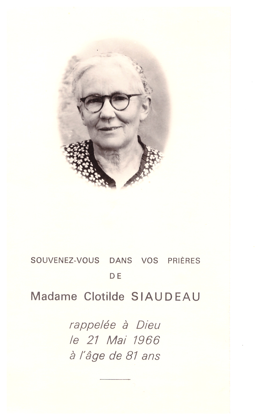 Madame Siaudeau rayonnait : autour d’elle un halo de douceur, de bonté, de gentillesse, de compréhension, mais qui n’excluait pas une morale sans faille. Madeleine était aussi l’infirmière du village. À vélo ou à pied, elle allait, au gré des besoins, faire un pansement, une piqûre. Pas chez nous, car Papa excellait en la matière.