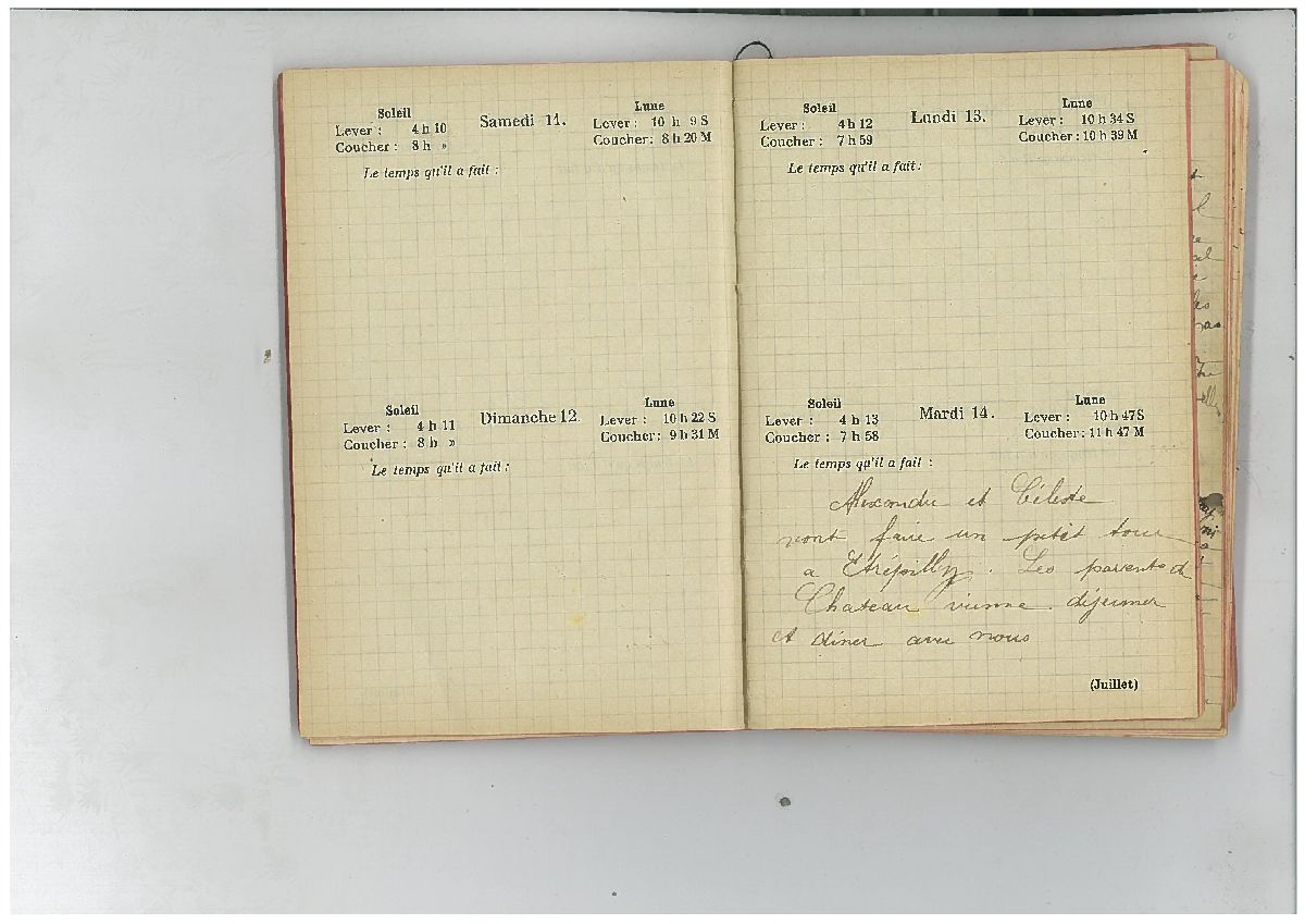 Alexandre et Céleste vont faire un petit tour à Etrépilly. Les parents de Chateau vienne déjeuner et diner avec nous.